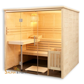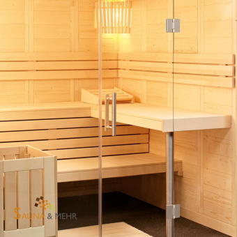 Standardisierte Massivholzsaunen im Systembau, können mit vielseitigen Technikpaketen für Finnische Sauna oder BIO Combi-Betrieb ausgestattet werden und mit möglichen Zubehör-Optionen erweitert werden.