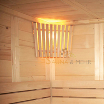Saunaleuchte mit Holzabdeckung und Kabel - Set "Komfort" für Eckmontage
