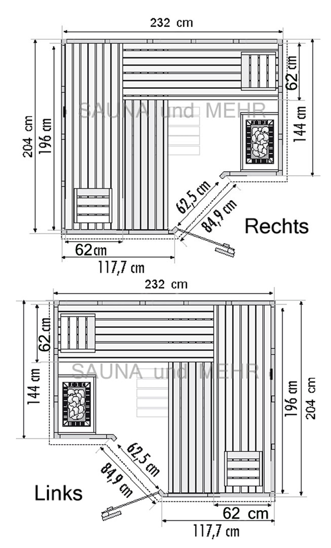 POLARIS Massivholz Saunakabine Large 232x204 - rechts