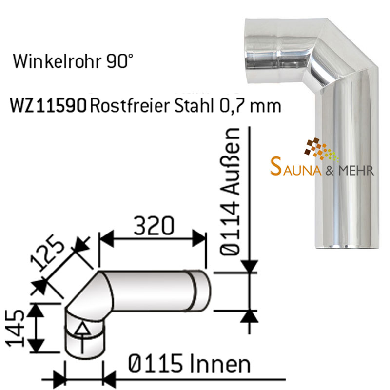 Rostfreier Winkelbogen Ø 115 mm - 90°
