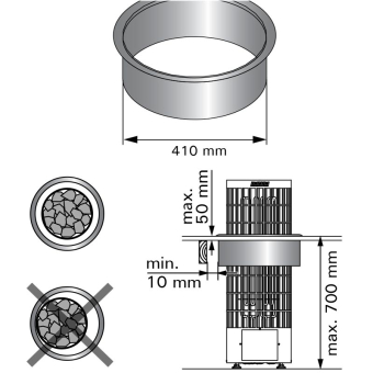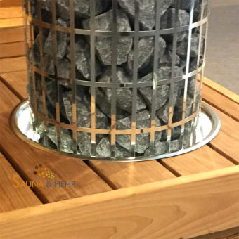 Einbaurahmen für das integrieren des Cilindro-Saunaofen in eine Liege oder Holzkonstruktion. Der Einbaurahmen schützt vor Wärmestrahlung und bietet eine optisch ansprechende Einbaulösung. Die zusätzlich Beleuchtung bringt durch das indirekte Licht verleiht dem Saunaofen ein noch ansprechenderes Aussehen und erzeugtin der Sauna ein besonderes Ambiente.