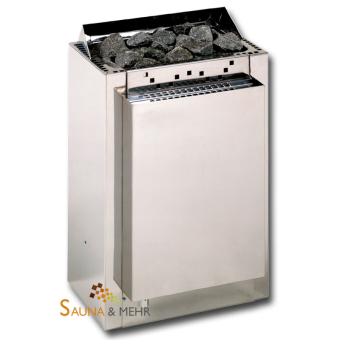 Der Kubic Combi ist ein Elektrosaunaofen-Wandmodell Innen und Außen aus hochwertigem rostfreiem Stahl. Das Volumen des Wasserbehälters beträgt 5 Liter.