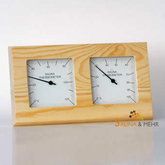 Sauna Klimastation "Wave" mit Thermometer und Hygrometer im Nadelholzgehäuse