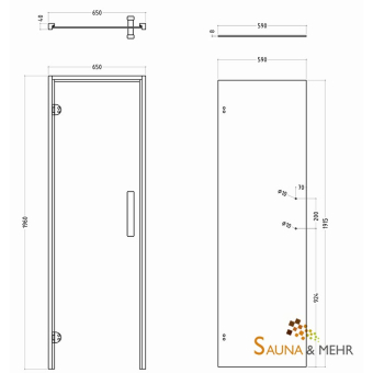 wood.LINE Ganzglas Saunatür "classic" 65 x 196 cm ohne Schwelle mit formschönen Holzgriff