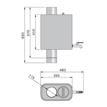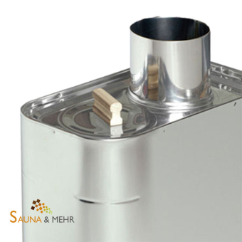 Dieser Warmwasserbehälter, mit 22 Ltr. Inhalt, ist für den Schornsteineinbau vorgesehen und wird direkt am Rauchrohrstutzen des Saunaofens montiert. Das Wasser erwärmt sich schnell durch den Rauchabzug der direkt durch den Wasserbehälter führt.