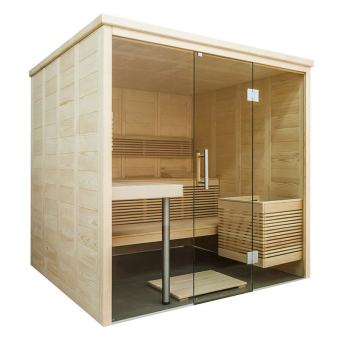 Balance View Large Massivholz Saunakabine 204 x 204 x 202 cm mit LED-Ambiente Beleuchtung