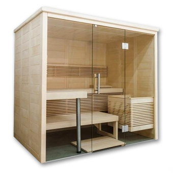 Mit unserem Modell Balance View haben Sie eine Kabine für traditionelle Sauna und kreislaufschonender Dampf- oder BIO-Sauna.
