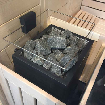 Der Sicherheitsschalter schaltet den Strom des Saunaofens ab, wenn ein Gegenstand darauf fällt oder gelegt wird, wie z.B. ein Kleidungsstück oder Handtuch, welches ein Brandrisiko darstellen würde, wenn der Ofen weiter heizt.