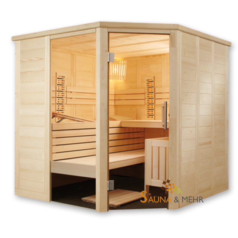 In unserer Modellserie ALASKA haben Sie in dieser Kabine nebst traditioneller Sauna und kreislaufschonender Dampf- oder BIO-Sauna nun auch alle zusätzlichen Vorteile einer Wärmekabine bzw. der Rotlicht-Vollsprecktrumstrahlung zur Verfügung.