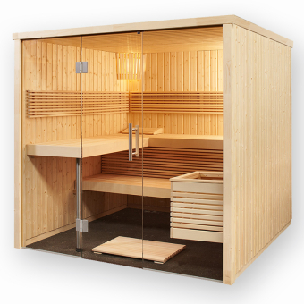 Standardisierte Massivholzsaunen im Systembau, können mit vielsteitigen Technikpaketen für Finnische Sauna oder BIO Combi-Betrieb ausgestattet werden und mit möglichen Zubehör-Optionen erweitert werden.