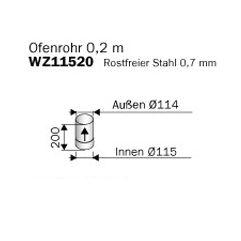 Rostfreies Rauchrohr Ø 115 mm - Länge 200 mm