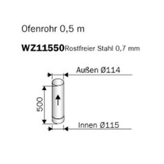 Rostfreies Rauchrohr Ø 115 mm - Länge 500 mm
