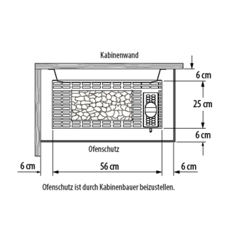 - Elektrisch beheizter Standofen für finnische Sauna zur platzsparenden Standontage vor Saunawand und Glasflächen mit optionale Rüclwand