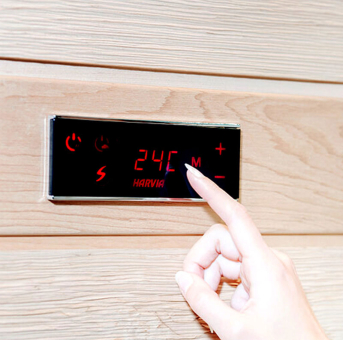 Das elegant kleine und dennoch übersichtliche Touch-Bedienfeld lässt sich mühelos am Ort Ihrer Wahl installieren. Dank des Bedienfelds können Sie mit nur einem Blick kontrollieren, ob Ihre Sauna auf die richtige Temperatur für Sie eingestellt ist. Wählen Sie die technologische Qualität eines Pioniers – made by Harvia