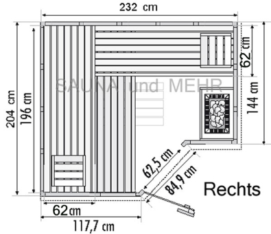 Die Massivsauna wood.LINE 6-Eck ist eine technisch sehr anspruchsvolle Lösung aus Massivholz. Innen wie außen wirkt dieses solide Massivholzmodell in Tischlerqualität klassisch aber dennoch modern. Dieses Modell verfügt zudem über eine flächenbündige Optik an den Innen- und Außenseiten; ein besonderes Schmuckstück für Ihren privaten Wellnessbereich. Vorgefertigte Wandelemente und Decke aus beidseitig gehobelten 40 mm Bohlen aus nord. Fichte im Verbundsystem vorgefertigt zum Selbstaufbau. Das Nachspannen, wie bei herkömmlichen Blockbohlenkabinen, entfällt. Stil und Design für Ihren Privaten Wellnessbereich.